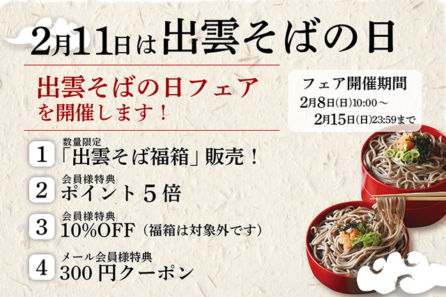 【予告】2/8から「出雲そばの日」フェア開催します!